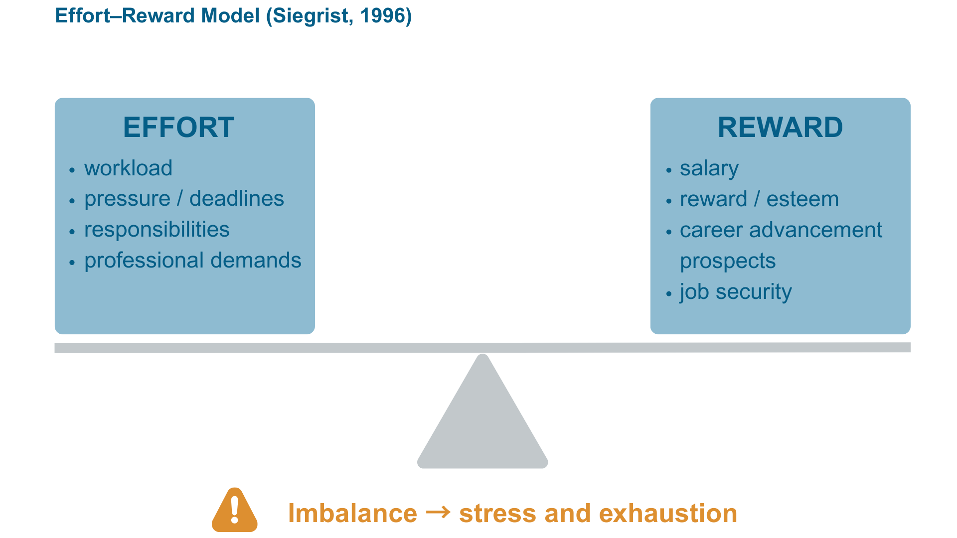 The second imbalance concerns the relationship between the effort invested and the recognition received. According to the effort–reward model developed by Johannes Siegrist (1996), when the effort put into work is not adequately acknowledged — whether through salary, appreciation, or career prospects — a sense of unfairness may arise.